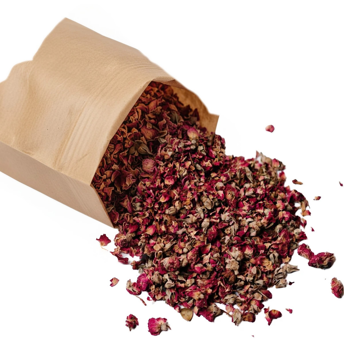 “Vibrant dried red rose petals, perfect for teas and desserts.”